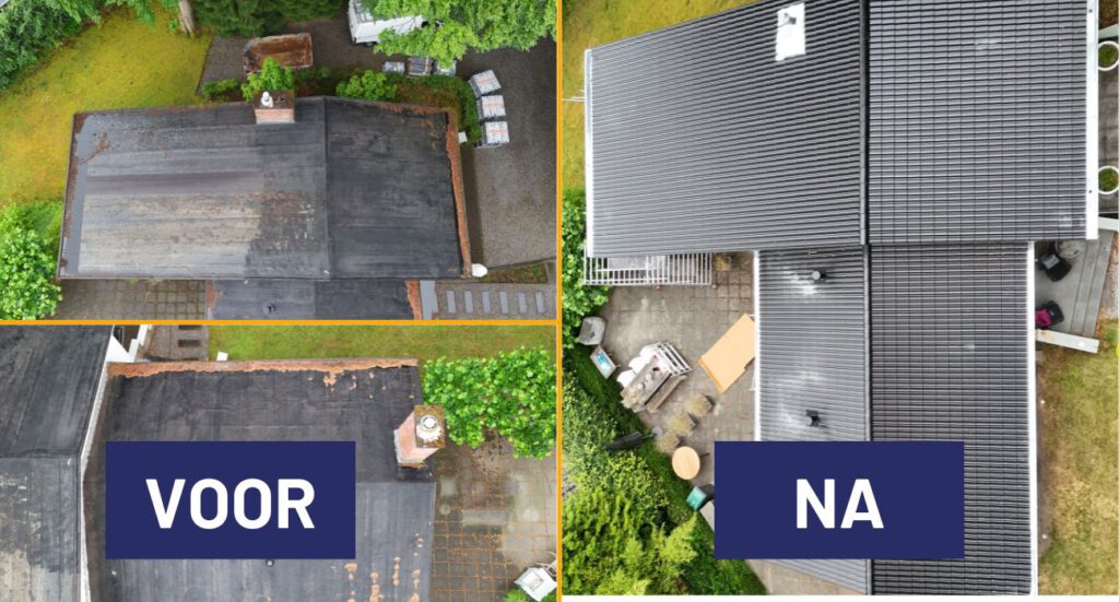 Het project is uitgevoerd door een team van 4 tot 5 ervaren vakmensen en binnen 3 tot 4 werkdagen volledig afgerond. Op alle uitgevoerde werkzaamheden geldt een garantie van 10 jaar, wat de kwaliteit en betrouwbaarheid van deze dakrenovatie onderstreept.